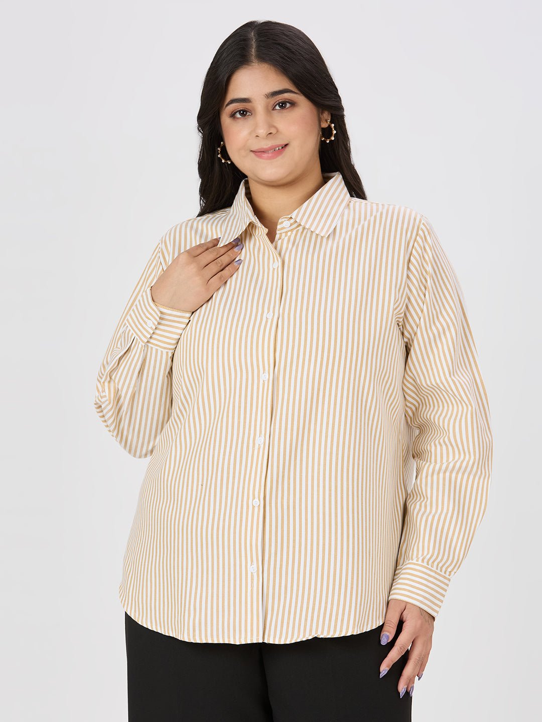 Style Quotient Women Tan White Polycotton Formal Shirt