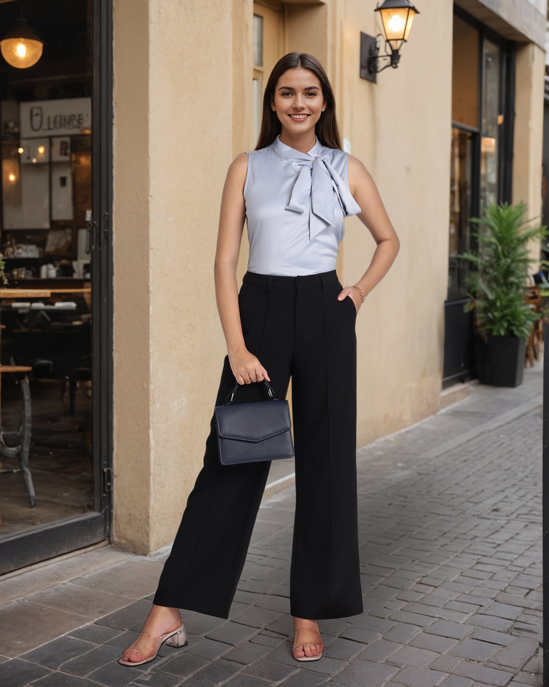 Style Tip- "Office Chic: Pair the top with high-waisted trousers in a neutral color like black or navy. Complete the look with pointed-toe pumps and minimal jewelry for a professional yet stylish ensemble.
