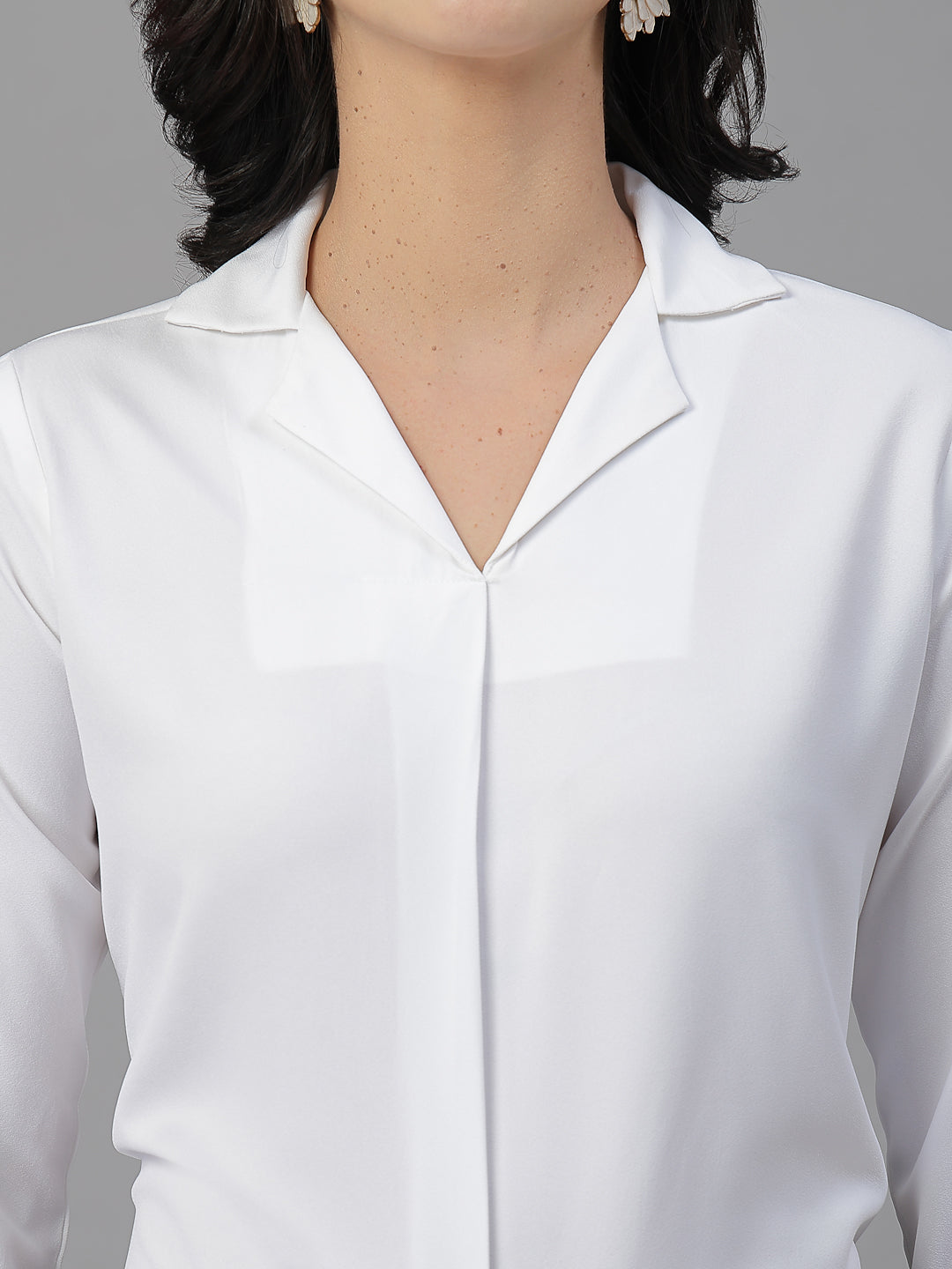 Style Quotient Women Solid White Polymoss Shirt Style Top-Tops-StyleQuotient