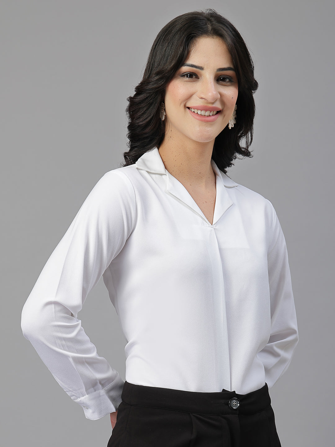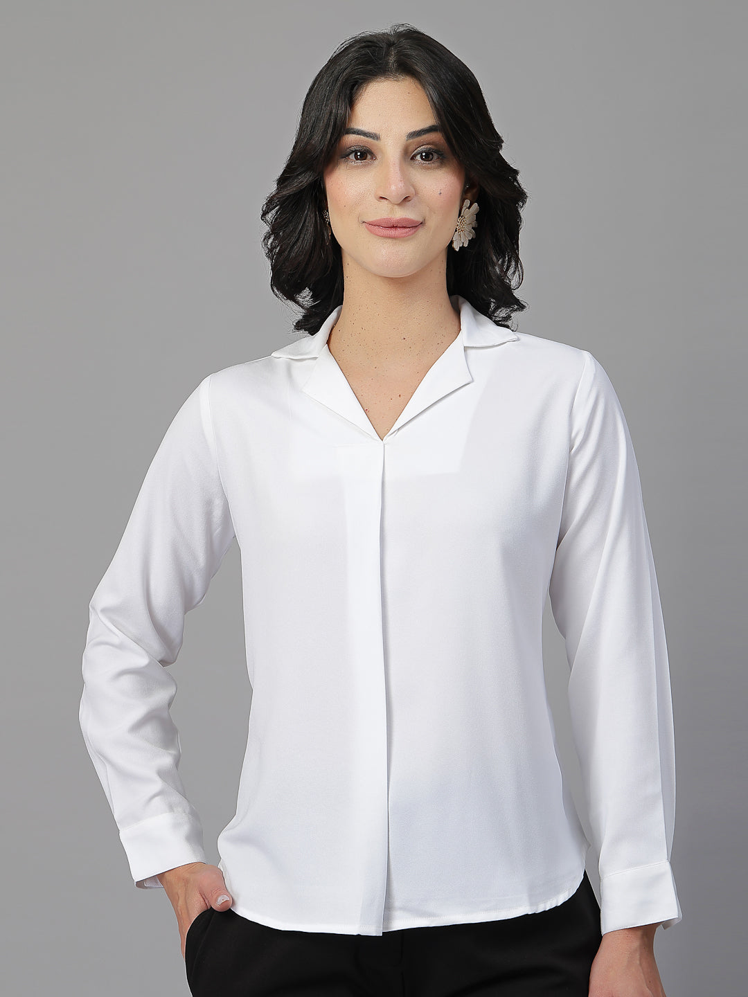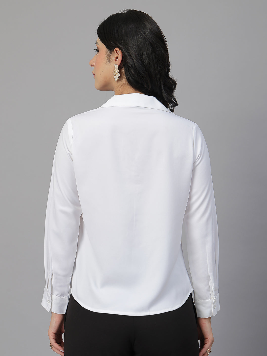 Style Tip- For an office-ready ensemble, pair this formal shirt with high-waisted trousers and pointed-toe pumps, accessorized with minimalistic jewelry for a chic and professional touch.